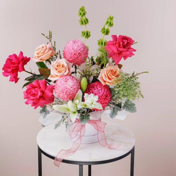 Accented with lush Dusty Miller foliage and Magnolia leaves, our Jubilant Romance Box of Blooms is a testament to the beauty of love’s tender embrace. Whether you’re commemorating a special milestone or simply expressing cheer and happiness, let St Albans Flower Market be your trusted partner in creating unforgettable memories. With its charming presentation and timeless appeal, this arrangement is sure to delight and captivate the heart of your loved one, spreading joy and romance in every petal.